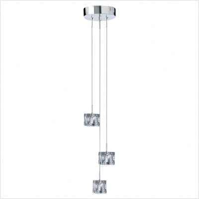 6773-3 Features: -Pendant. -Ice Cube Range. -Finish: Chrome. -Adjustable height. -Clear ice cube glasses. Specifications: -Accommodates: 3 x 20W G4 Halogen bulbs. -Overall dimensions: 100 cm H x 16 cm W.