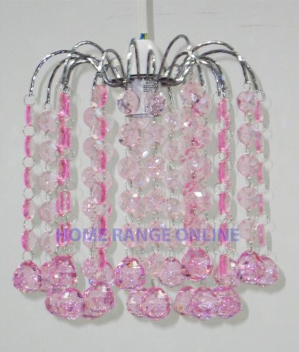 Pink Ceiling Shade Light Pendant Acrylic Crystal Effect Droplets